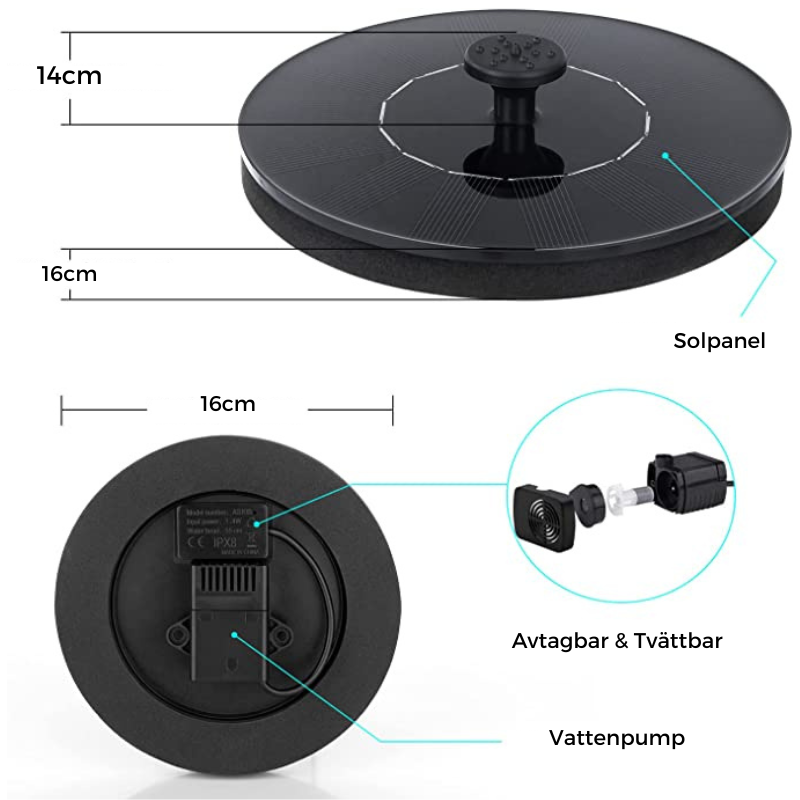 Le produit est très facile à installer. Il suffit de laisser la pompe flotter sur l'eau. Lorsque le panneau solaire reçoit la lumière du soleil, il se met automatiquement en marche en quelques secondes. Plus la lumière du soleil est forte, mieux il fonctionne.